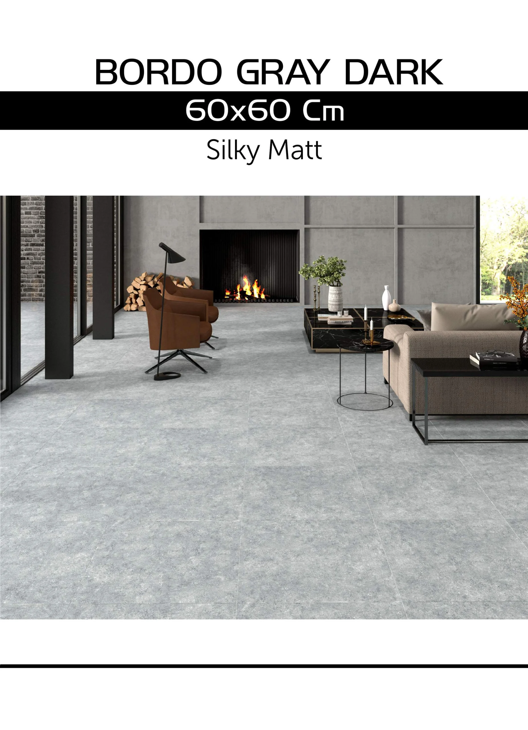 Bordo Gray Dark Collection Floor Tile 60×60 – Luxury IndoorTile for Modern UAE Interiors
